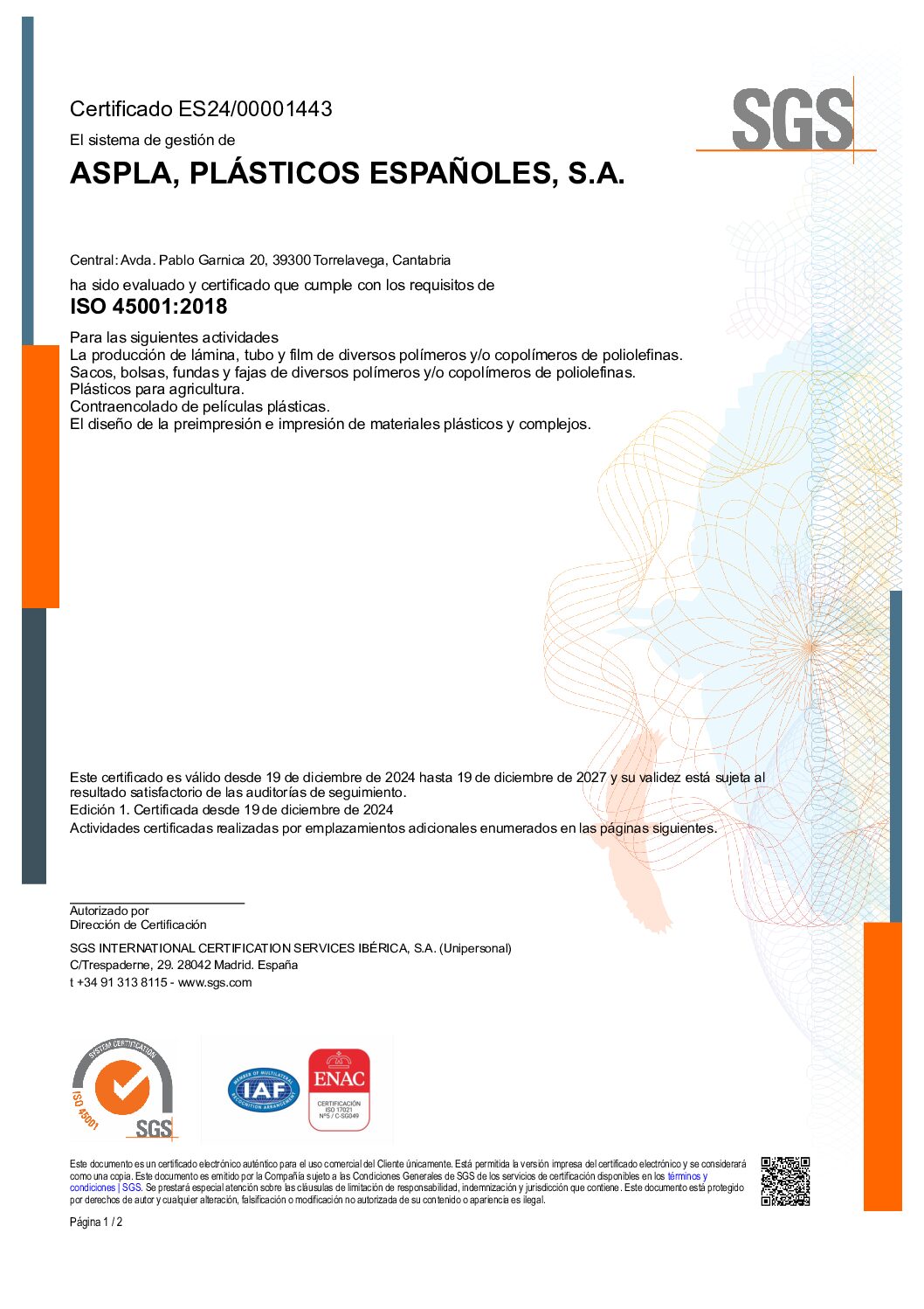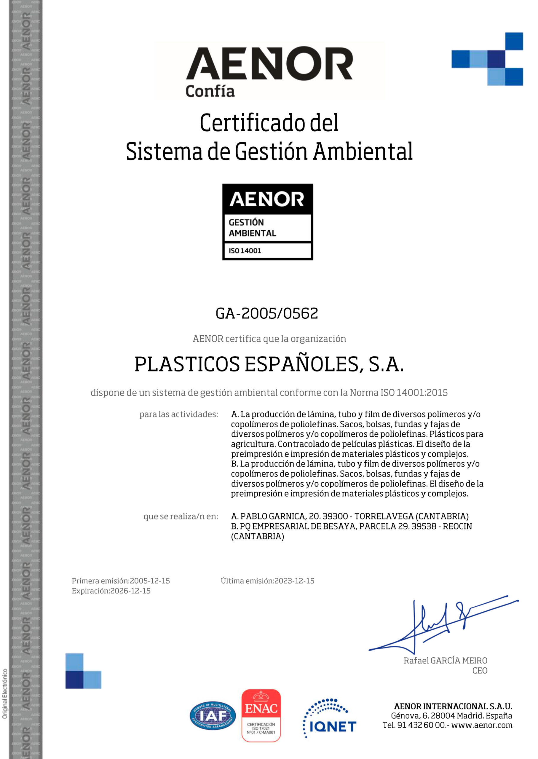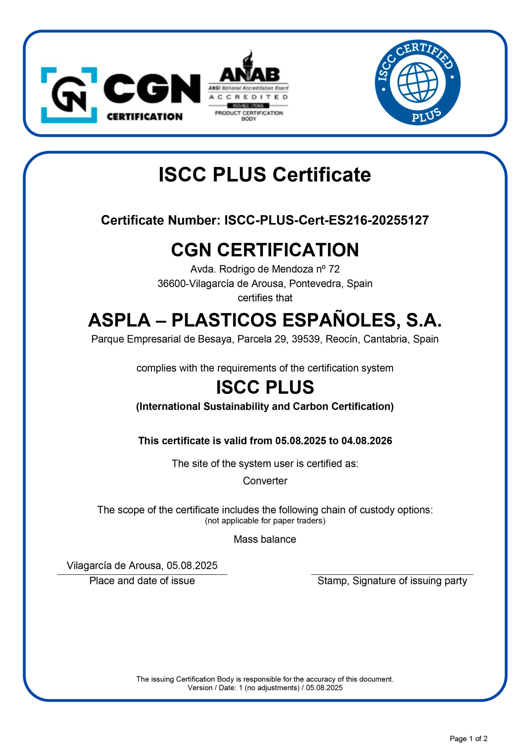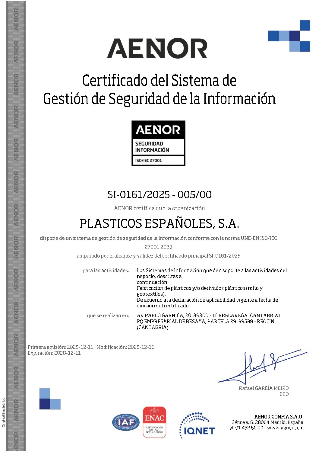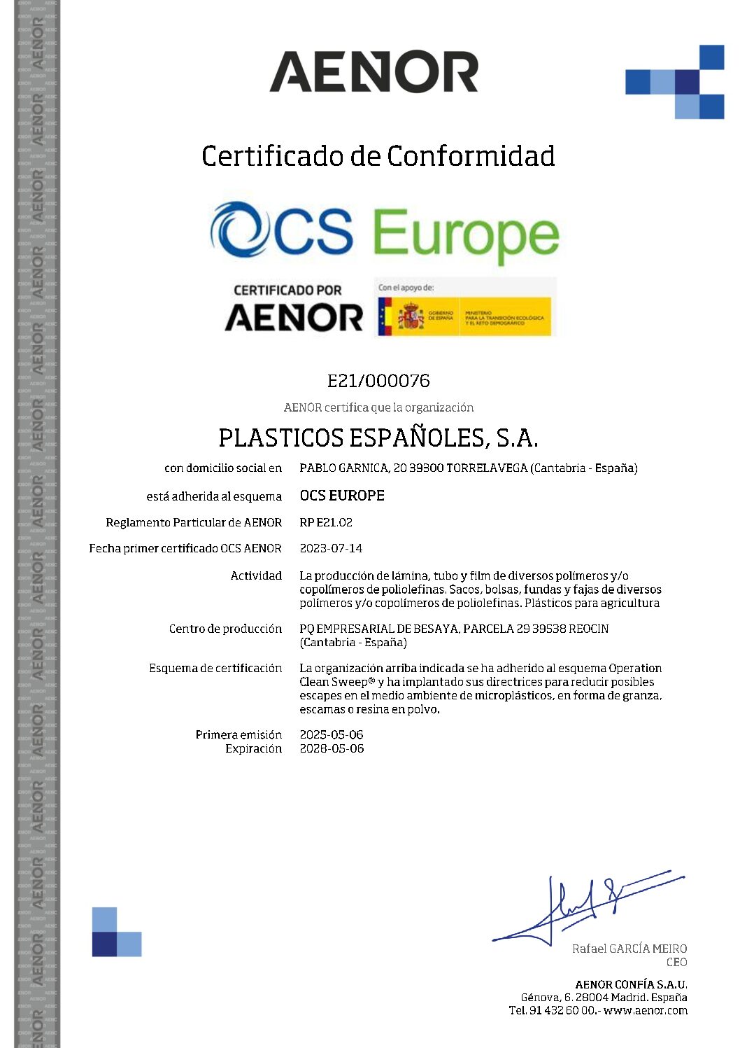 Gracias a ello, reforzamos la confianza de clientes y colaboradores, al aportar una garantía adicional sobre nuestro compromiso con la responsabilidad corporativa, la fiabilidad de nuestros procesos y la mejora continua en materia de sostenibilidad.