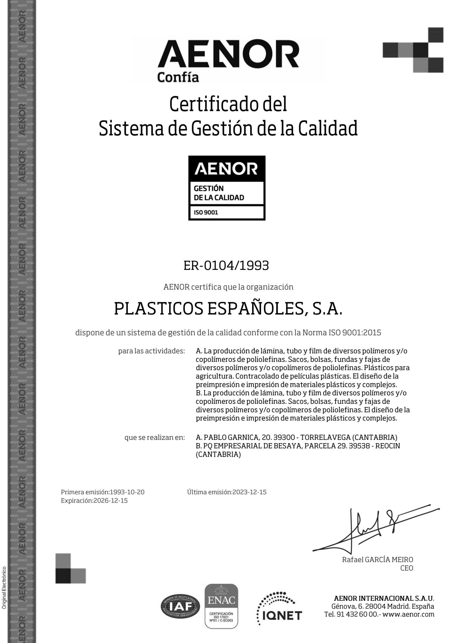 Este compromiso con la mejora continua nos permite ofrecer soluciones seguras, eficientes y adaptadas a los requisitos de nuestros clientes y de los mercados en los que operamos.